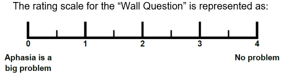 The Wall Question is a self-report rating on quality of life (QoL) for people with aphasia. This is a rating designed to gain insight into the perspective of the person with aphasia regarding the degree to which aphasia creates a barrier to participating in life. It is designed for use at a stage where the person with aphasia has some experience in living with aphasia – in other words, beyond the acute care phase of the healthcare continuum.
